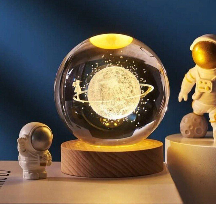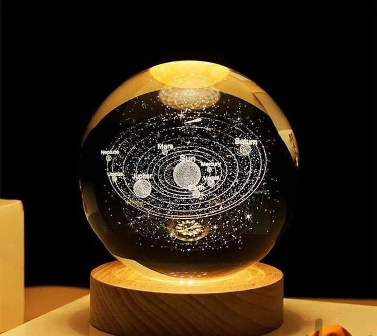 این چراغ خواب کریستالی به صورت سه بعدی و در طرح منظومه شمسی، سیارات ،فضانورد و ماه تولید شده که باعث جذابیت بیشتر اتاق خواب شما می شود. جنس این گوی شیشه ای از کریستال فشرده می باشد .