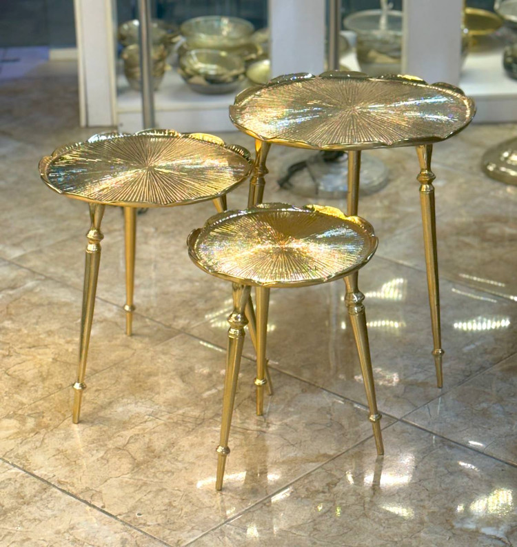 میز عسلی آلومینیومی سه سایز نیلوفر طلایی