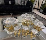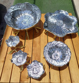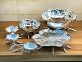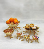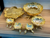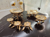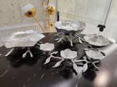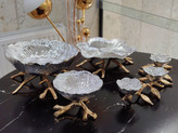 ظروف پذیرایی لوتوس در رنگهای طلائی و نقرهای و دورنگ طراحی شده است. مدل گل لوتوس با پایه فلزی شامل میوه خوری و شیرینی خوری وشکلات خوری و اردو خوری سه خانه طراحی شده است. اینکار گزینهای مناسب برای تزئین دکور میز پذیرایی میباشد.سرویس پذیرایی طرح لوتوس یکی از شیک ترین و جدیدترین ظروف برای سرو و پذیرایی است. آبکاری باکیفیت طلایی پایه ها و آبکاری باکیفیت نقره ای ظروف، جلوه خاص و زیبایی را به این سرویس داده است که با هر دکور و دیزاینی کاملا هماهنگ است. این محصول توسط هنرمندان ایرانی تولید شده است و با توجه به کیفیت بالای این محصول، قیمت آن یک سوم نمونه خارجی است.