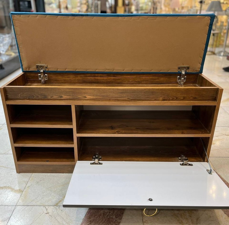 یکی از ملزومات هر خانه ای جاکفشی است،این جاکفشی یک محصول با کیفیت است که با متریال ملامینه درجه یک ساخته شده که علاوه بر زیبایی و گنجایش 15 جفت کفش،دارای نشیمن است که میتوانید از آن برای نشستن و پوشیدن کفش خود استفاده کنید،ابعاد این محصول 100*50×35 است،یراق آلات استفاده شده ترک است و از کیفیت مرغوبی برخوردار است.رنگبندی این محصول به این صورت است که در تمامی رنگ ها چوب کار شده سفید و رنگ رویه کوبی متغیر است،دقت داشته باشید که در رنگ مشکی از بهترین کیفیت پارچه مبلی استفاده شده است.